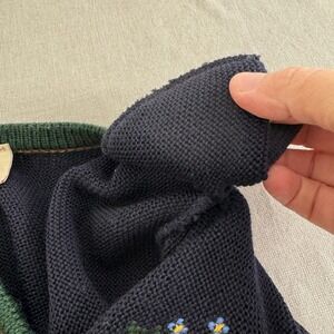 Vintage Astrifa 100% pure new wool cardigan. Beautiful knit sweater with floral needlepoint design. Metal buttons with flower design, shoulder pads.