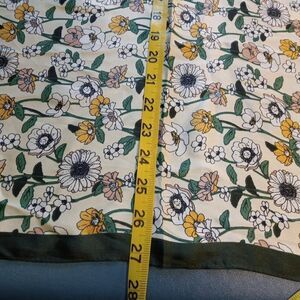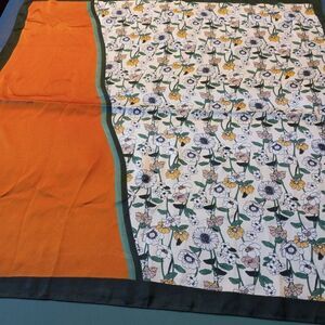 Vintage Asymetrical pattern Floral Orange Green Border Scarf Cottagecore Grandma