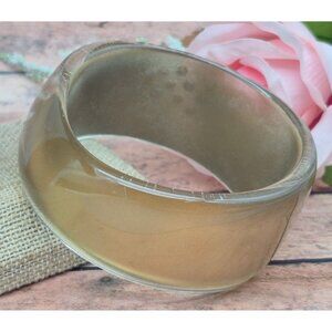 Add a touch of vintage elegance with this asymmetrical chunky wide bangle bracelet. Adorned with sparkling rhinestones, this gold-brown Lucite piece is perfect for any occasion, offering timeless style and sophistication.