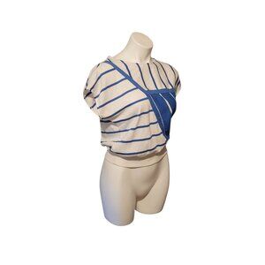 Vintage Asymmetrical Shirt Blue White Striped Small / Medium Small Stain 80s
