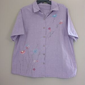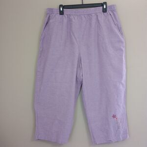 Vintage At Last 100% cotton light purple set women's size 18/20W. Short sleeve top and Capri bottoms both have some embroidered details. Pre owned