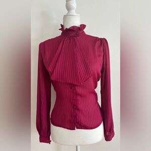 At Once Vintage scarf collar blouse featuring a stylish bow scarf detail with subtle stripes. Very good condition size medium