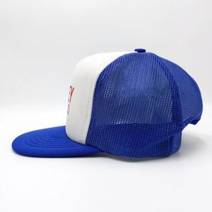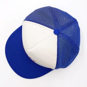 Vintage Atchley Service Co Trucker Hat Snapback Mesh Cap Script 90s Blue White
