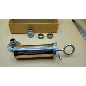 This Vintage Ateco Cake Ornamenting Tools Icing Set from the 1950's is a collection of round fill nozzles made of stainless steel. Manufactured in the United States by the reputable brand Ateco, these antique tools are ideal for adding intricate designs to your cakes using the timeless vintage theme. Perfect for any baking enthusiast looking to add a touch of nostalgia to their baking projects.