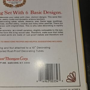 The Vintage Ateco FANCY PASTRY DECORATING SET 334c includes 6 piping tips and bags, perfect for all occasions. Made of stainless steel, these nozzles are easy to clean and maintain. Crafted in the United States by Ateco, a trusted brand in baking accessories, this set is ideal for creating intricate designs and patterns on cakes and pastries. The silver color adds a touch of elegance to your baking projects, making it a must-have for any baker looking to elevate their skills in decorating.