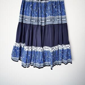 Vintage Atelier Provencal Sz Medium M Blue Floral Striped Tiered Full Maxi Skirt