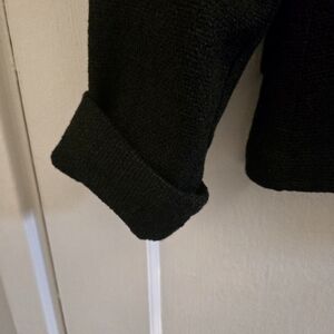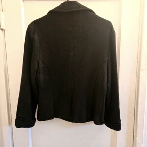 (all offers considered) Sophisicated, Stylish and versatile vintage black blazer, can be used as coat. Crafted is high quality with a beautiful design pattern sewn in and buttoned cuffs. Large beautiful buttons and traditional collar for a polished look! Excellent condition! No call outs!