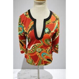 #VintageAthleta #Y2KTop #PsychedelicBlouse #RetroFloral #DeepVNeck #2000sAthleisure #FunkyPrints #FestivalStyle #RareAthleta