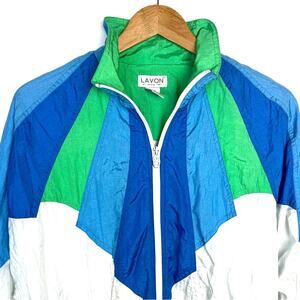 Vintage Athletic Warm Up Jacket White Blue Green