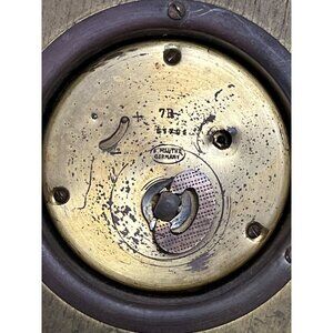 The dial is marked “Atlanta” with 7 Jewels – 8 Days, and the back brass plate is stamped F. Mauthe Germany, confirming the movement’s maker. This is a mechanical, key-wind clock (not battery operated). It currently appears to have been overwound and is untested, but remains an excellent decorative piece for vintage, nautical, or mid-century interiors.