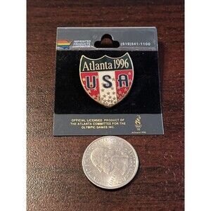 Vintage Atlanta Summer Olympics Team USA Shield Crest Lapel Hat Pin