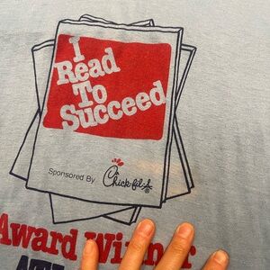 Very unique vintage Atlanta t shirt that also mentions Chick-fil-A. This shirt is quite old, no holes and still looks great. There are no gross stains but there is a small bleach stain in the center of the shirt that you can see on the front and back (refer to photos). It blends in with the shirt and adds to the charm. Very cool piece!! This is a size XS- see specific measurements in the photos.