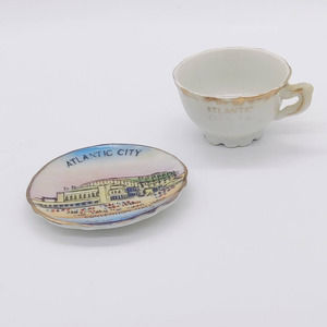 Vintage Atlantic City New Jersey Miniature Tea Cup Saucer Plate Set Souvenir 80s