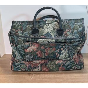 Vintage Atlantic Floral Tapestry Doctor Bag Carpet Weekender Lock Closure
