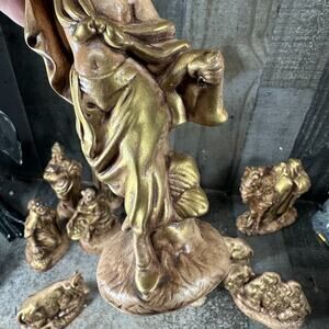Vintage Atlantic Mold Nativity Scene - Large 13 Detailed Pieces Christmas The staff/stick is missing frmo one figure. See photos. Great item with very minor signs of wear.
