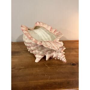 Vintage Atlantic Mold Seashell Planter Coastal Ceramic Conch Shell Vase 1970s