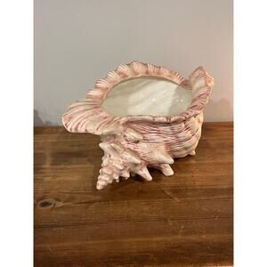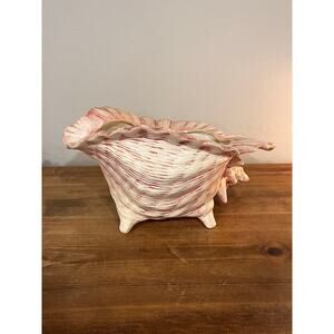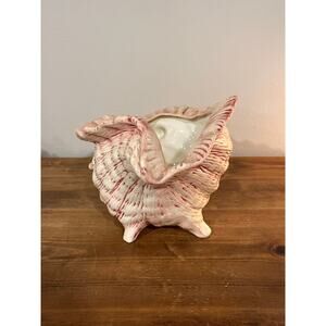 Add a touch of vintage coastal charm to your home with this beautiful Atlantic Mold ceramic seashell planter. Shaped like a conch shell, this piece features a soft cream base with pink and red accents and a speckled glaze finish. Ideal as a planter, centerpiece, or decorative accent for beach-themed interiors or retro décor lovers.