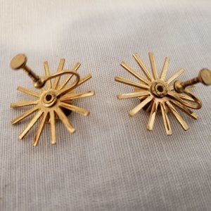 Vintage Atomic Starburst Moonglow Screw Back Earrings MCM Mid Century Clip On
