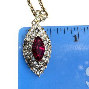 Vintage Attwood & Sawyer Ruby and White Rhinestones Gold Tone Pendant Necklace