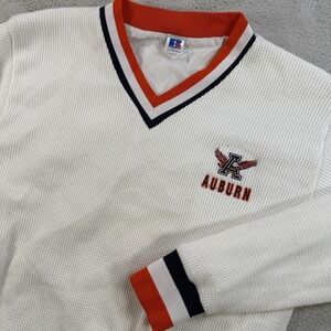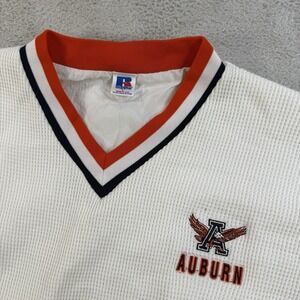 Vintage Auburn Tiger Russell Athletic Pullover Men Large White Waffle Knit Lined
