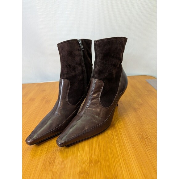 Vintage Audrey Brooke Leather Ankle Boots Point Toe Brown US 7 EU 37.5 (R02)