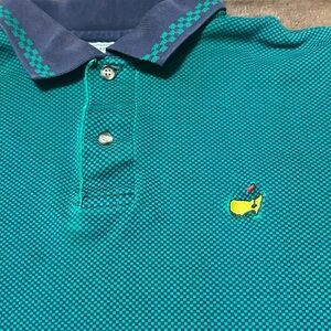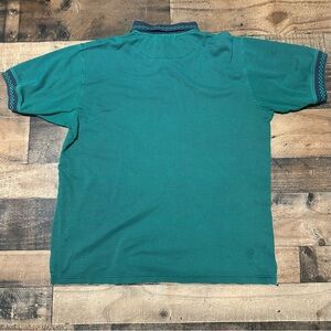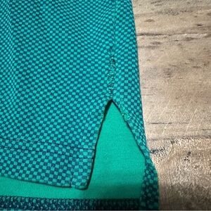 Excellent condition! Vintage from 1990s. Green & navy blue patterned shirt with embroidered chest logo. Side area has been professionally repaired, shown in photo, unnoticeable unless looking up close.