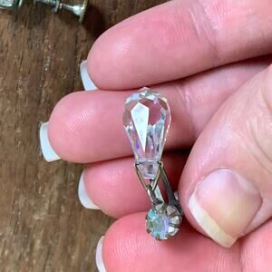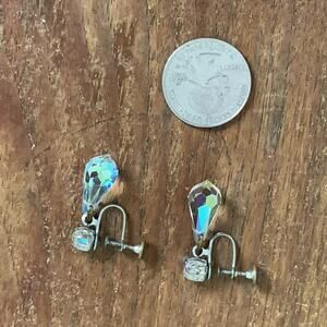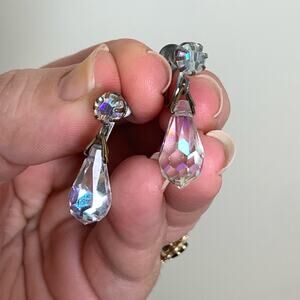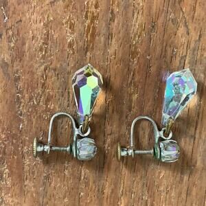 Vintage Aurora Borealis AB Crystal drop dangle screw back silver earrings