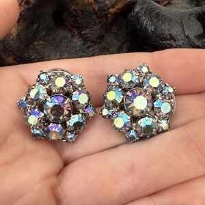 Vintage Unmarked Aurora Borealis Rhinestone Clip On Earrings