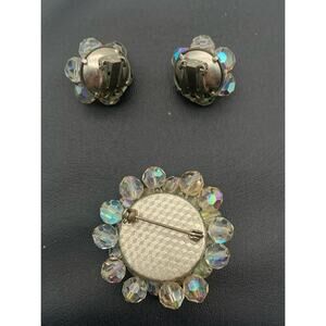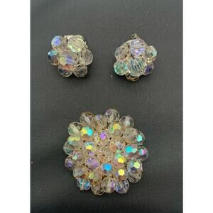 Vintage Aurora Borealis Brooch And Clip On Earring Lot Set Unmarked