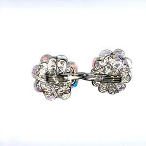 Vintage Aurora Borealis Clip On Clear Crystal Beaded Flower Earrings