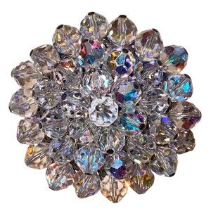 Vintage Aurora Borealis Crystal Flower Brooch Pin Jewelry