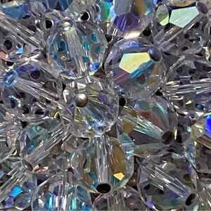 This exquisite brooch is crafted from sparkling Aurora Borealis crystals, creating a captivating flower design that catches the light beautifully. Its vintage charm adds elegance to any ensemble. A secure pin-back ensures easy attachment to clothing or accessories.