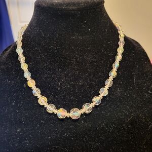 Vintage Aurora Borealis Made in England Necklace & Jonne Clip On Earrings
