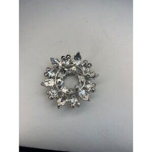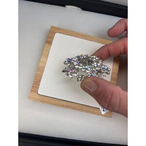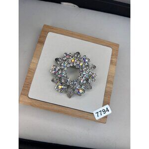 Vintage Aurora Borealis Rhinestone Flower Brooch Silver-Tone 2" Diameter