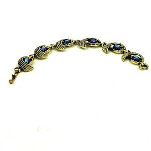 Six links with oval aurora borealis coated rhinestones that sparkle in blues and purple when the light hits