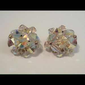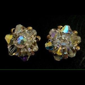 Vintage Aurora Borealis Rivoli Crystal Bead Gold Tone Clip-On Earrings. Very beautiful new WOT