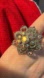 Gorgeous vintage-style aurora borealis stretch ring featuring layered clusters of iridescent rhinestones in clear and AB tones. The stones throw beautiful rainbow flashes under light โ video shows the true sparkle this ring gives off.