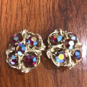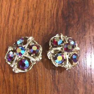 Vintage Aurora Borealis Clip on earrings gold tone.