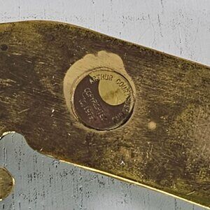 Add a touch of elegance to your desk with this vintage 1979 Arthur Court Designs fox letter opener. Expertly crafted in solid brass, this unique piece is both functional and decorative, perfect for collectors and enthusiasts alike. Made in the USA.