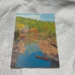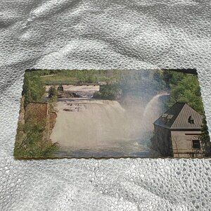 Capture the stunning natural beauty of Ausable Chasm and Rainbow Falls in these vintage Continental postcards, featuring vibrant color photography by Les Smith.