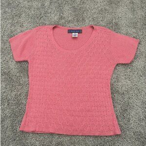 Vintage Austin Reed Ribbed Knit Pink Silk Small Top
