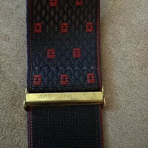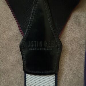 Vintage Austin Reed Navy / Red / Leather trim Suspenders / made in England