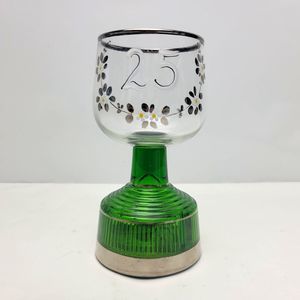 Lovely vintage 25th Silver Wedding Anniversary Musical Stemmed Wine Glass produced by the Austrian company Edelglas Wien .