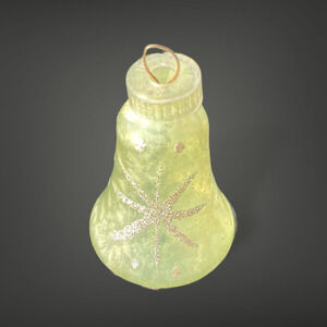 Vintage Austria Frosted Glass Bell Ornament–Pastel Green w/ Silver Starburst