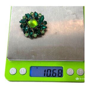 • Statement brooch with vibrant green stones
