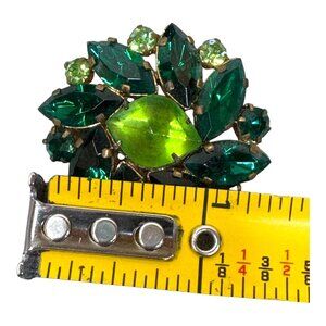 Vintage Austrian Crystal Emerald Green Rhinestone Leaf Cluster Brooch Statement