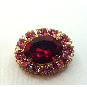 Vintage Austrian Gold-Tone Brooch With Red & Pink Rhinestones Oval Design