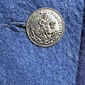 Beautiful original silver toned metal buttons depicting St. George slaying the dragon, even has extra button sewn on bottom