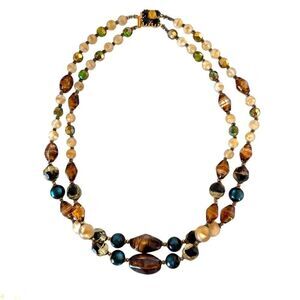 Vintage Austrian Crystal Double Strand Beaded Necklace, decorative clasp stamped Austria