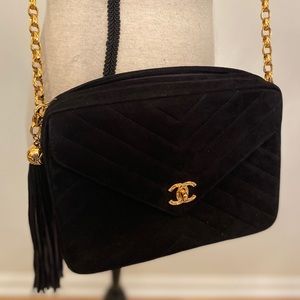 Vintage Authentic Chanel Black Suede Purse